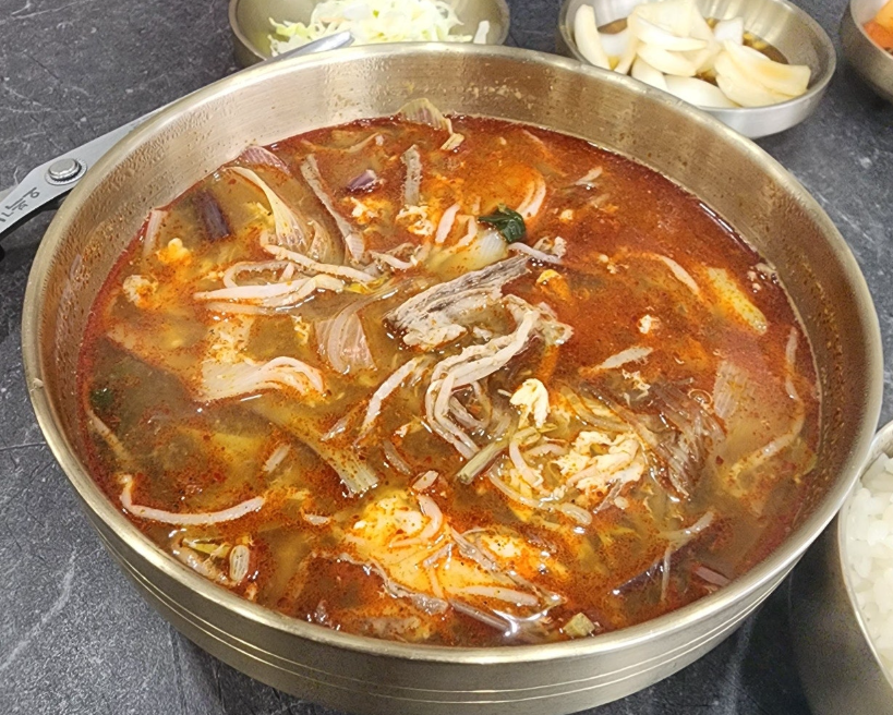 육개장: 얼큰하고 칼칼한 육개장은 추운 날씨에 딱 어울리는 메뉴였어요. 건더기도 푸짐하게 들어있고, 적당히 매콤해서 땀을 뻘뻘 흘리면서 맛있게 먹었습니다.