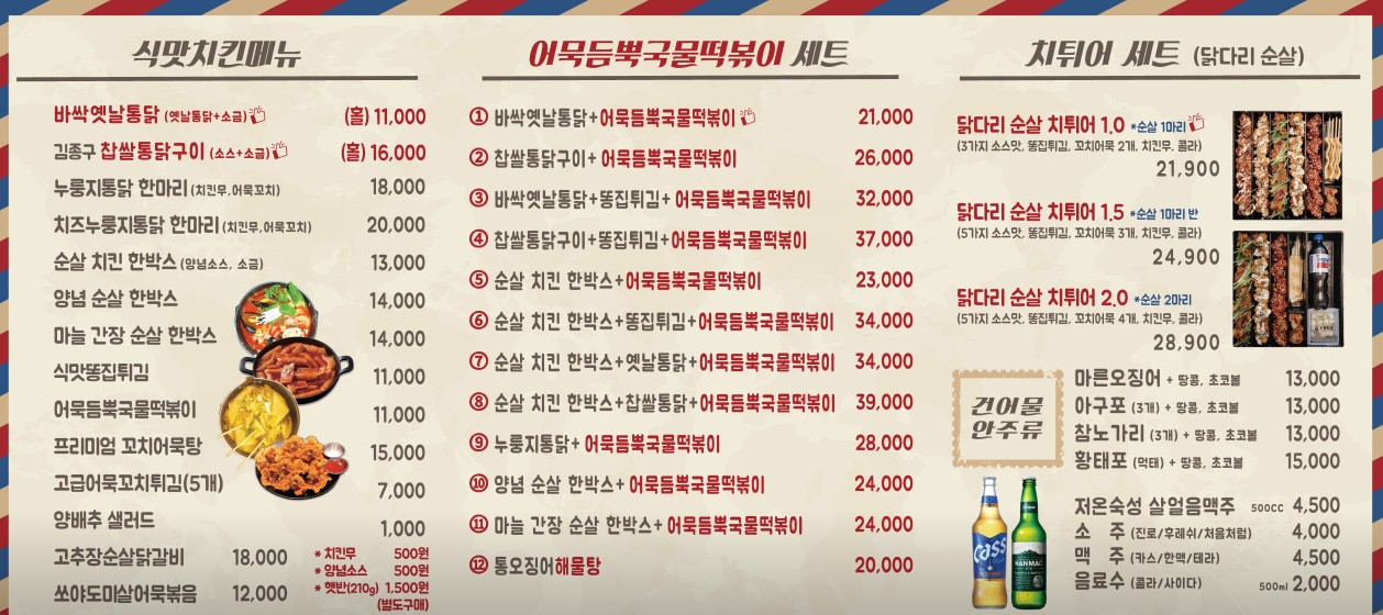 5. 둘이서 누룽지통닭, 바삭바삭 옛날통닭, 저온숙상 생맥주 4잔 : 47,000원