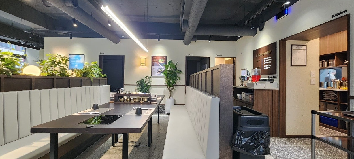3. 테이블 간격 만족, 룸도 2개 운영중, 룸을 전부 함께 사용가능