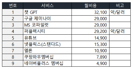 - 계정 공유는 서비스별 정책을 준수해야 합니다. 특히 넷플릭스는 동일 가구 외 공유 시 추가 비용이 발생합니다.